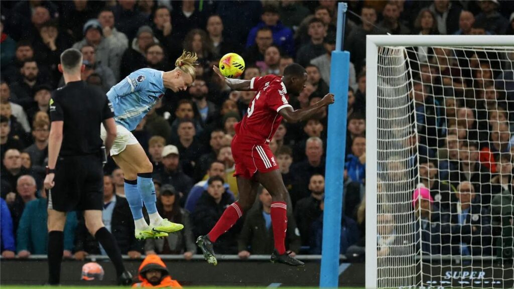 في قمة مباريات الدوري الإنجليزي الممتاز، افتتح النجم النرويجي إيرلينج هالاند مهاجم مانشستر سيتي، التسجيل لفريقه أمام غريمه التقليدي ليفربول. جاء الهدف في مواجهة مثيرة شهدها ملعب “الاتحاد” بتاريخ 9 نوفمبر 2025، في أول لقاء يجمع بين الفريقين هذا الموسم في الدوري الإنجليزي.
